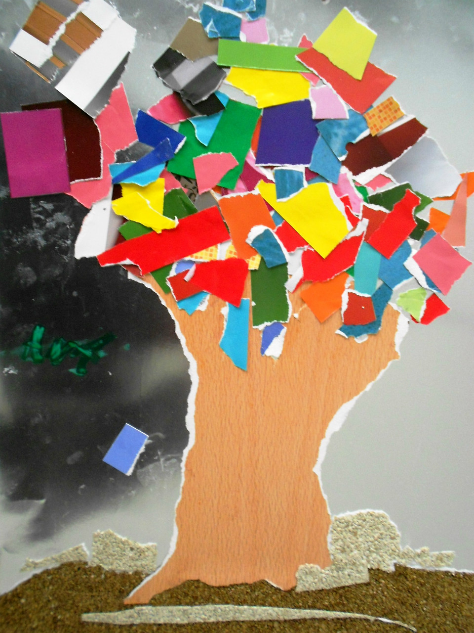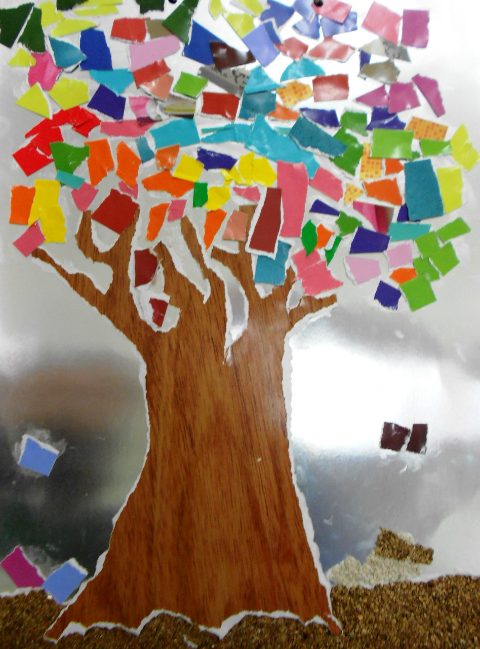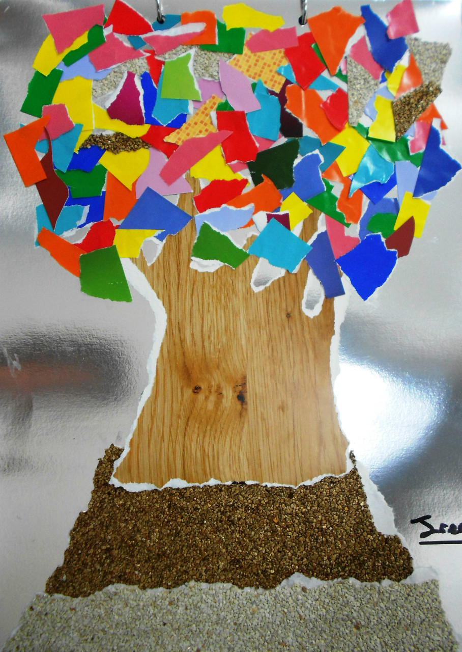 Hola de nuevo. El objetivo de esta semana era realizar un collage. Dado que algunos de los niñ@s que vienen al taller son bastante pequeños, decidí que no iban a utilizar tijeras, sino la técnica de rasgado de papel. Para este ejercicio nos hemos inspirado en un trabajo de Violeta Monreal. Como siempre, los resultados son muy variados, ya que los niñ@s podían elegir entre un fondo de cartulina brillante o mate. Además de esto, también quedaban a su elección el tono del árbol, para el que utilizaron un papel ilustrado con una imagen de madera, y las hojas, que podían ser en tonos contrastados o en una misma gama de color. Aquí os dejo los resultados.